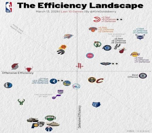 觀察最近10場比賽的攻防效率圖,不難發(fā)現(xiàn)湖人隊(duì)已然成為攻防兼?zhèn)涞膹?qiáng)隊(duì)。他們的進(jìn)攻效率位列第三,防守效率也躋身前11,凈效率更是高居聯(lián)盟第三。盡管湖人隊(duì)接下來的賽程略顯艱難,但球迷們?nèi)云诖麄兡軌虮3之?dāng)前狀態(tài),為季后賽做好充分準(zhǔn)備。