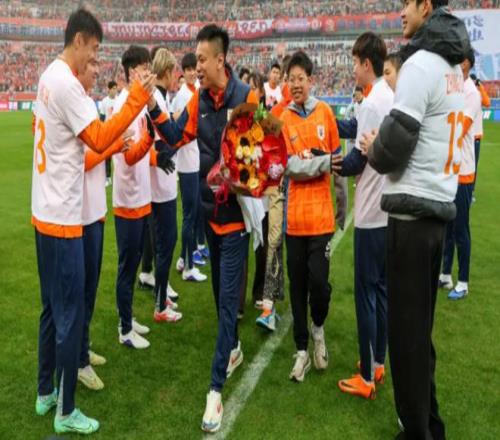 儀式現(xiàn)場,張弛的眼神堅(jiān)定而溫柔,他深情地親吻隊(duì)徽,向看臺揮手致意,每一個(gè)動作都牽動著在場每一位泰山球迷的心。隊(duì)長王大雷站在隊(duì)友身邊,眼眶瞬間泛紅,淚水止不住地滑落。這淚水,是對并肩作戰(zhàn)十余載兄弟的不舍,是對張弛整個(gè)職業(yè)生涯的最高致敬,也是對“一人一城,一生忠橙”這一信仰的最好詮釋。這份跨越歲月的情誼,瞬間點(diǎn)燃了奧體中心的橙色信仰,為球隊(duì)的勝利奠定了最堅(jiān)實(shí)的情感基石。