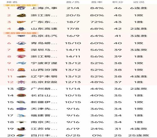 隨著北京3連勝,上海大勝50分,CBA最新積分榜出爐!廣廈第2