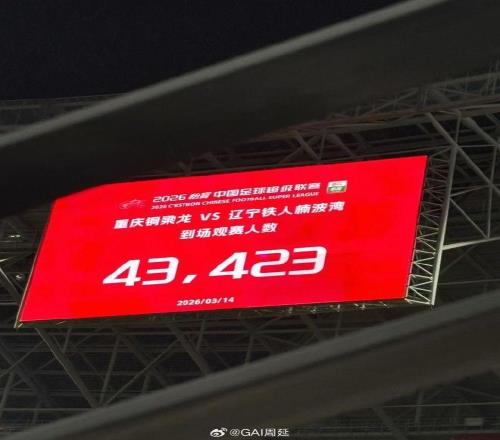北京時間3月14日,中超第2輪,重慶銅梁龍在龍興足球場迎來中超首個主場的比賽,面對同樣是升班馬的遼寧鐵人,根據(jù)本場比賽現(xiàn)場播報,本場比賽共有43423人來到現(xiàn)場觀戰(zhàn)。