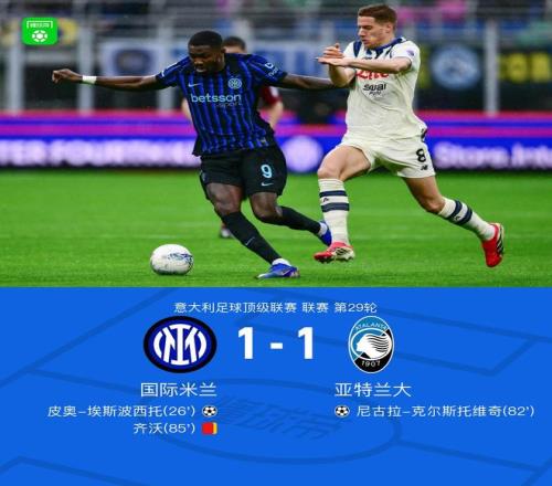 北京時(shí)間3月14日意大利足球甲級(jí)聯(lián)賽第29輪,國(guó)際米蘭主場(chǎng)迎戰(zhàn)亞特蘭大。比賽中,國(guó)際米蘭球員完成助攻,皮奧-埃斯波西托率先破門;隨后亞特蘭大的尼古拉-克爾斯托維奇打入一球扳平比分;比賽尾聲階段,國(guó)際米蘭一名球員吃到第二張黃牌。最終雙方戰(zhàn)成1-1平。