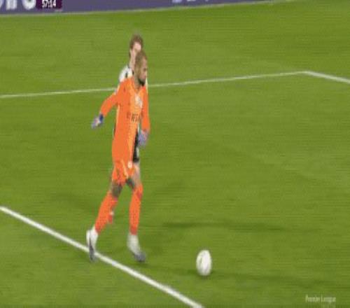 上半場(chǎng)補(bǔ)時(shí)階段,紐卡斯?fàn)柎虺隽鲿撑浜希啡纳溟T打在防守球員腿上有變向,桑切斯一招太極推手,將球擋出。