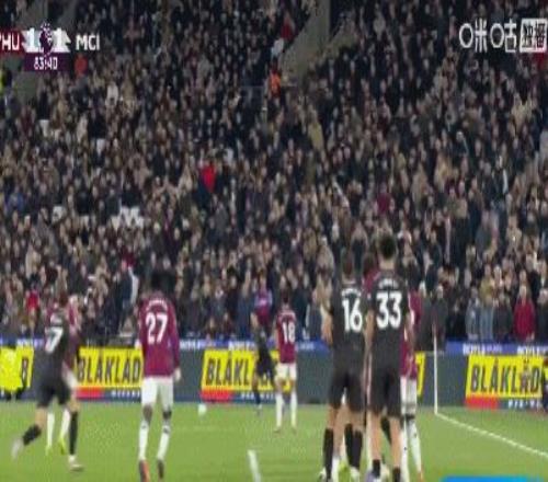劍南春曼城11西漢姆聯(lián),B席吊射,賴因德斯中框