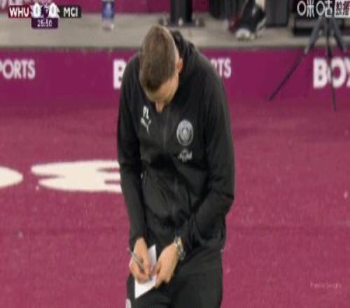 第27分鐘,表情有些糾結(jié),瓜帥助理教練林德斯場邊記錄