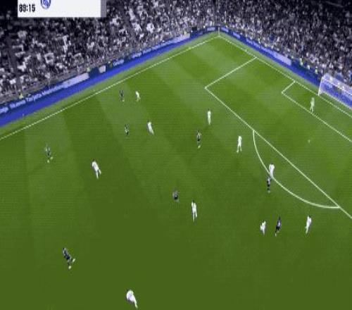第90分鐘,剛剛替補登場的居萊爾在本方半場得球,看到門將站位靠前,他毫不猶豫直接起腳吊射。皮球從半場飛越門將頭頂直入球網(wǎng),皇馬4-1,伯納烏瞬間陷入瘋狂,這粒進球甚至讓人想起當(dāng)年貝克漢姆的經(jīng)典遠距離吊射。