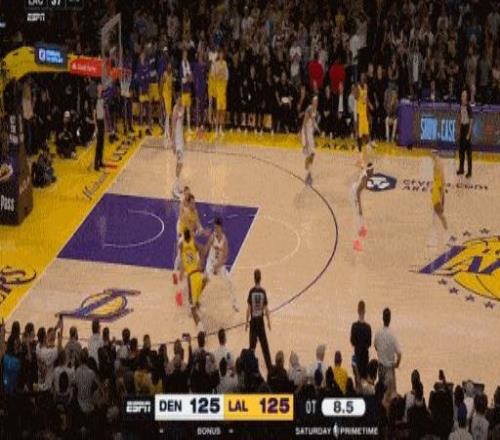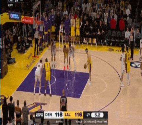 最后0.5秒,東契奇制勝中投命中,最終全場比賽結(jié)束,湖人以127-125戰(zhàn)勝掘金。