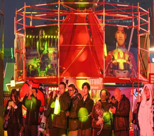 2026年3月11日,上海西岸,格子旗嘉年華的夜間演出吸引了游客的關(guān)注,嘉年華期間推出的“尋找周冠宇”主題展以中國車手周冠宇的成長歷程為主線,通過“夢想的搖籃”“通往F1的階梯”“歷史與榮光”“蓄勢與未來”四大篇章,系統(tǒng)呈現(xiàn)中國首位F1車手從愛好卡丁車的上海少年到征戰(zhàn)世界頂級賽事的非凡軌跡。澎湃新聞記者 吳棟 圖