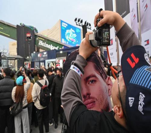 2026年3月11日,一位夾著人氣車手維斯塔潘頭像的車迷正在遠(yuǎn)距離拍攝留下周冠宇。澎湃新聞記者 吳棟 圖
