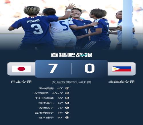 全場比賽結束,日本女足7-0菲律賓女足。