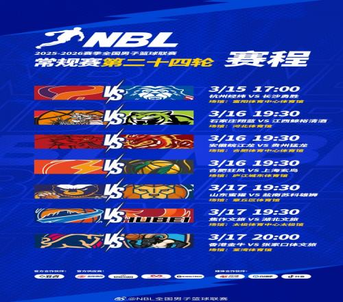 【賽程】NBL常規(guī)賽第二十四輪將于3月15日3月17日進行!