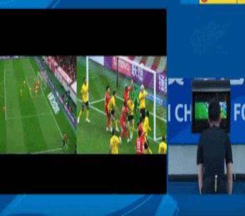 比賽的第21分鐘,楊希主罰角球左腳勁射被李昊封出,萊昂納多補(bǔ)射破門(mén)。在萊昂納多破門(mén)之后,李昊向主裁判憤怒投訴,認(rèn)為克勞德沖撞了自己。隨后,視頻助理裁判介入判罰,并且要求主裁判回看慢鏡頭。