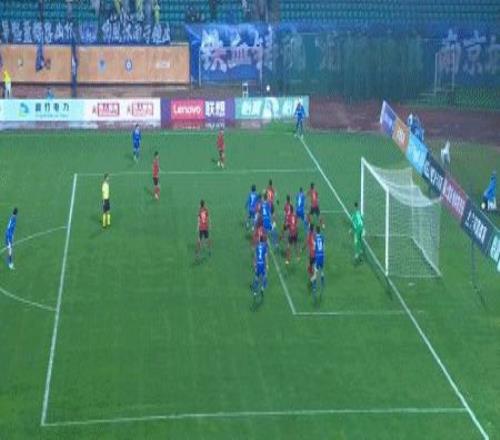 第45+3分鐘,姆貝克利角球開(kāi)出,澤-維托爾頭球破門(mén)扳平,南京城市1-1