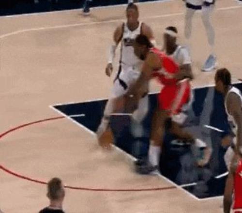 進(jìn)攻回合對抗倫納德,導(dǎo)致后者腳踝受傷直接退賽。