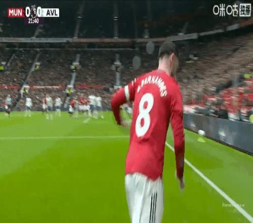 聯(lián)賽第7球!比賽第53分鐘,B費角球助攻卡塞米羅頭槌打破僵局,曼聯(lián)1比0維拉!