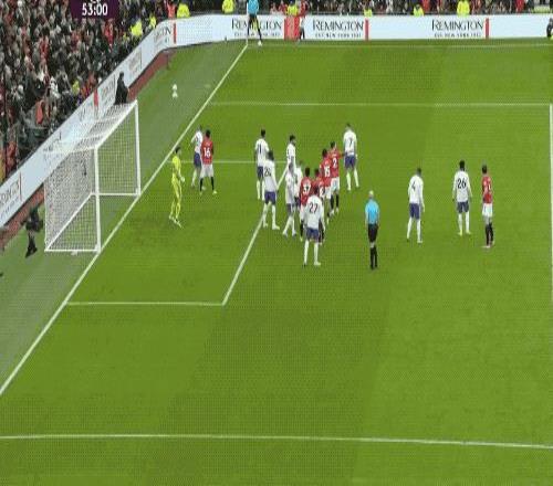 第53分鐘,曼聯(lián)獲得角球,B費主罰,卡塞米羅在3名維拉球員的夾擊下,搶到落點頭槌破門。
