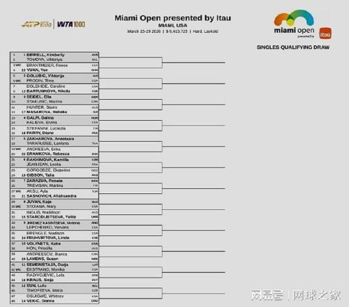 我們再來關(guān)注下周賽事。北京時間今晨,WTA1000邁阿密站公布了單打資格賽簽表,中國金花袁悅將與安德萊斯庫、維基奇等球員一同出戰(zhàn),爭奪正賽席位。