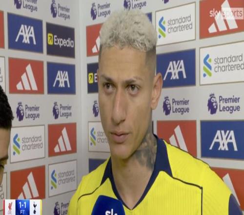 英超第30輪,熱刺客場1-1戰(zhàn)平利物浦,此役打入扳平比分進(jìn)球的熱刺前鋒里沙利松賽后接受了天空體育的采訪。