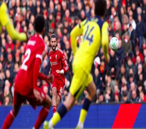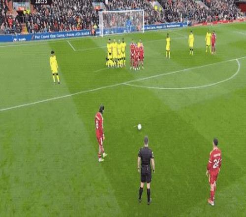 第18分鐘,利物浦獲得前場位置不錯的任意球,索博斯洛伊再次秀出圓月彎刀,皮球繞過人墻,維卡里奧撲救不及,皮球應(yīng)聲入網(wǎng)。