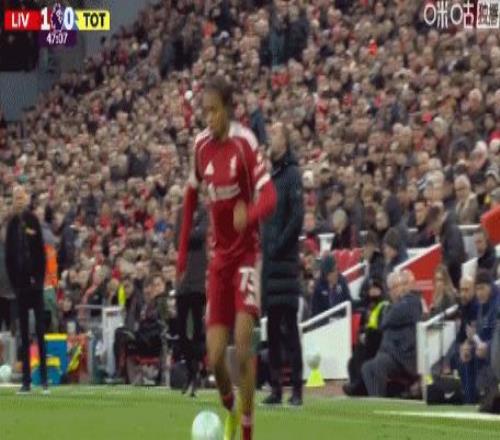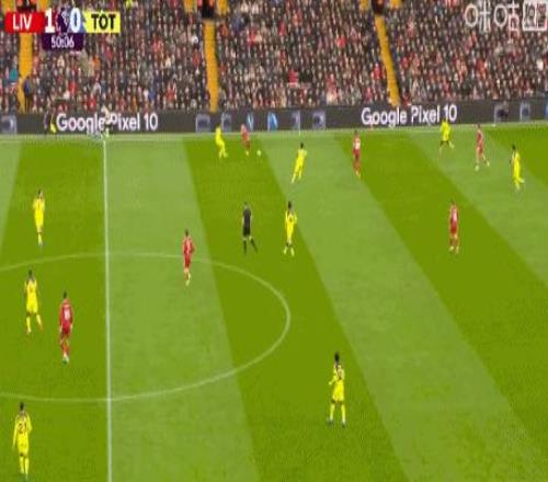 第90分鐘,穆阿尼扛開范戴克送助攻,里沙利松推射破門,熱刺1-1扳平!