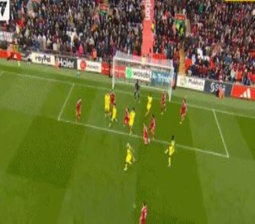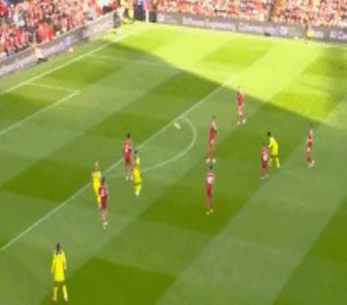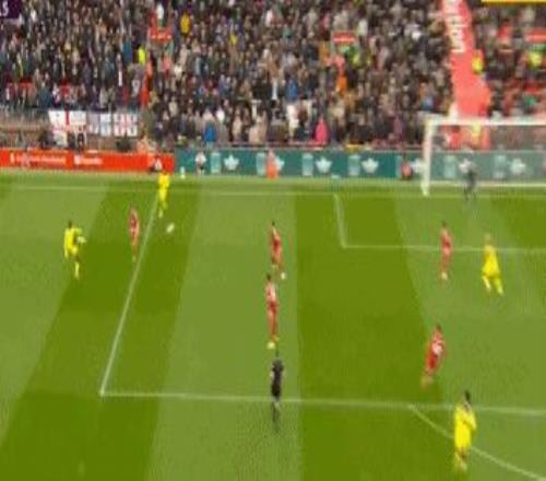 第36分鐘,理查利森后場帶球,索博斯洛伊巧妙將球斷下,麥卡利斯特做球,加克波勁射直奔左下角,維卡里奧撲了一下,皮球擊中立柱彈出,利物浦差點(diǎn)再下一城。