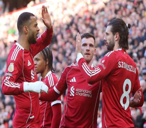 利物浦排出4231陣型。加克波頂在最前面。弗林蓬、維爾茨和恩古莫哈的進(jìn)攻組合聯(lián)袂出擊。赫拉芬貝赫和麥卡利斯特組成雙后腰。索博斯洛伊、喬-戈麥斯、范戴克和羅伯遜4后衛(wèi)首發(fā)出戰(zhàn)。阿利松擔(dān)任首發(fā)門將。薩拉赫、?;倏撕托』_坐在替補(bǔ)席待命。