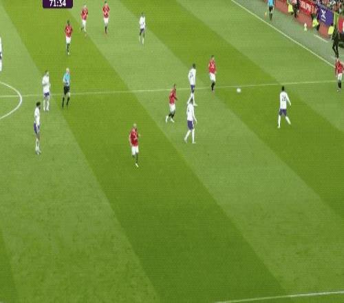第71分鐘,卡塞米羅策動反擊,B費(fèi)助攻雙響,庫尼亞倒地推射,曼聯(lián)再次領(lǐng)先。