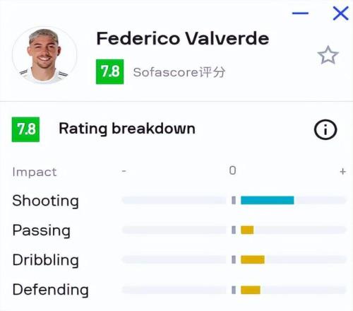 本場(chǎng)比賽,巴爾韋德在第44分鐘打進(jìn)一球,幫助皇馬擴(kuò)大領(lǐng)先優(yōu)勢(shì)。但進(jìn)球只是他全場(chǎng)出色發(fā)揮的一部分。
