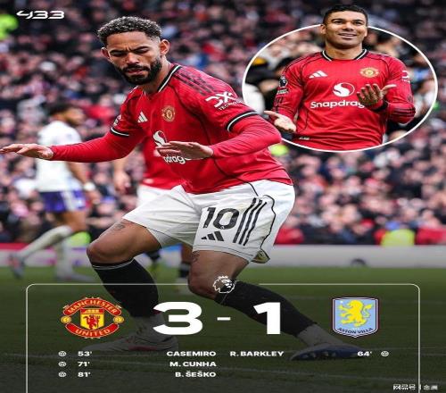 曼聯(lián)主場3-1戰(zhàn)勝阿斯頓維拉,穩(wěn)居第3并擴(kuò)大領(lǐng)先優(yōu)勢。大馬丁屢次做出神撲,B費(fèi)助攻卡塞米羅頭球打破僵局,巴克利扳平比分,B費(fèi)再次助攻,庫尼亞破門,謝什科替補(bǔ)鎖定勝局。