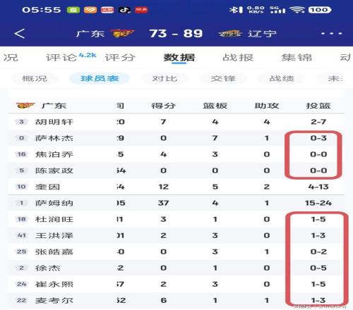 此役,廣東隊3個首發(fā)球員,薩林杰、焦泊喬和陳家政,3人合起來得4分,運動戰(zhàn)是1分沒得。而幾名主要替補球員,徐杰、杜潤旺、王洪澤、張皓嘉、崔永熙和麥考爾,6人合計23投4中。上述9名球員,加在一塊共得了17分,廣東隊這球,輸?shù)囊稽c都不冤。