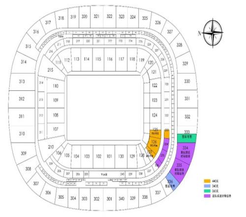 本場比賽客隊區(qū)可售散票票區(qū)圖如下: