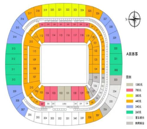 本場比賽主隊區(qū)可售散票票區(qū)圖如下: