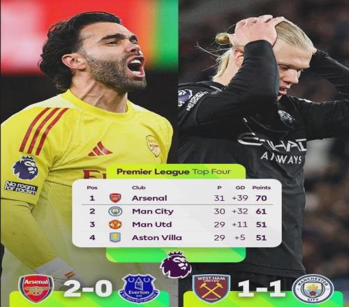 本輪聯(lián)賽之后,阿森納多賽一場(chǎng)已經(jīng)領(lǐng)先曼城多達(dá)9分!