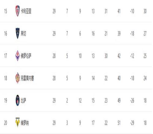 隨著大黑馬21羅馬+AC米蘭01爆冷!意甲最新積分榜:25名差7分