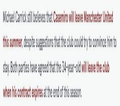 卡里克在賽后承認,卡塞米羅的狀態(tài)使他成為當前球隊不可或缺的一員。只是雖然有傳言稱曼聯(lián)可能會試圖挽留卡塞米羅,卡里克仍然認為巴西中場今夏會離開,他在合同期滿后自由轉會,已經(jīng)通過俱樂部進行了官宣。