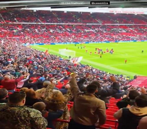 「再踢一年(one more year),再踢一年,卡塞米羅!」當曼聯(lián)3-1阿斯頓維拉的比賽結束后,7萬多球迷的呼喊聲在老特拉福德球場回蕩著??ㄈ琢_面帶微笑地站在主帥卡里克身邊,不斷朝看臺上揮手和鼓掌。