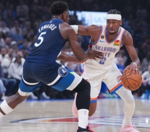 雷霆擊破森林狼,亞歷山大vs愛德華茲:22投20分對(duì)17投19分,倆都被防住了。