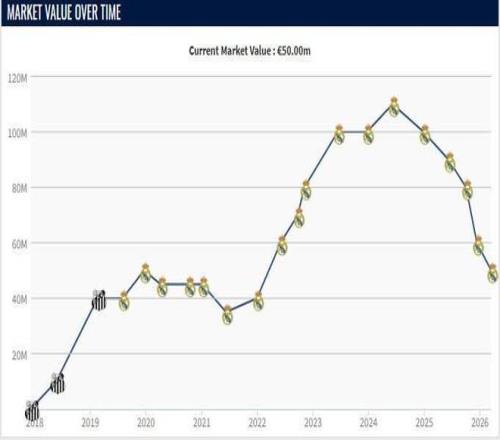 但在姆巴佩加盟球隊(duì)之后,羅德里戈在球隊(duì)中的重要性下降,上賽季開始,他的身價(jià)開始下滑,2024年12月跌至1億歐元,2025年6月跌至9000萬歐元,10月下降至8000萬歐元,12月跌至6000萬歐元,而今年3月則下降至5000萬歐元。