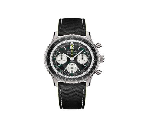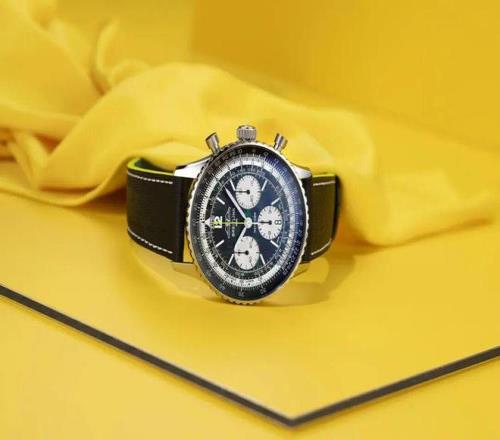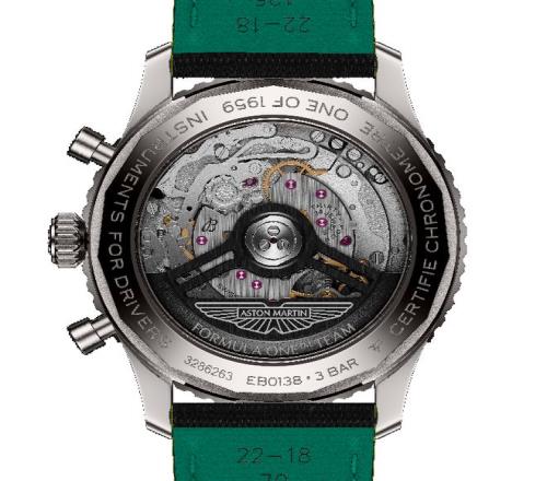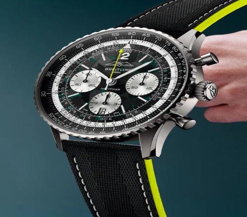 這次合作的歷史淵源后,能夠真正把這場“時間與速度”的聯(lián)盟進行詮釋的,自然還是這枚雙方聯(lián)手推出的第一款作品——航空計時B01計時碼表43 Aston Martin Aramco Formula One? Team限量版。