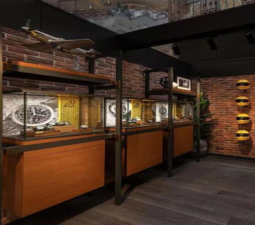 整個空間的視覺語言,延續(xù)了百年靈一貫風(fēng)格美學(xué),充滿現(xiàn)代工業(yè)氛圍,同時也有復(fù)古美學(xué)的加持。