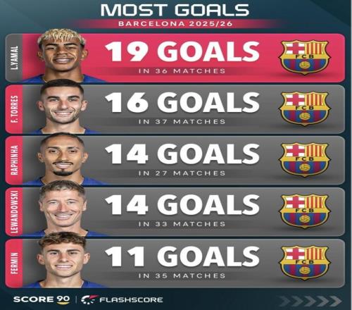 巴薩2025/26賽季隊(duì)內(nèi)進(jìn)球最多