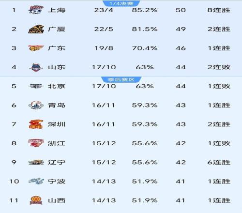 再看第六與第七名:青島國信水產(chǎn)和深圳馬可波羅戰(zhàn)績同為16勝11負(fù),積分同積43分,分列第六、第七。這意味著,從第四名山東到第七名深圳,四支球隊(duì)之間最大分差僅為1分——相當(dāng)于一場比賽的凈勝分,就足以改寫全部排序邏輯。