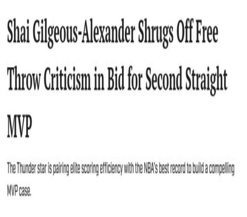 北京時(shí)間3月21日,亞歷山大在最近一次采訪中明確表態(tài)自己想拿MVP,還回應(yīng)了球迷關(guān)于自己罰球的爭議。