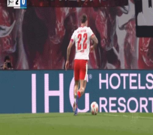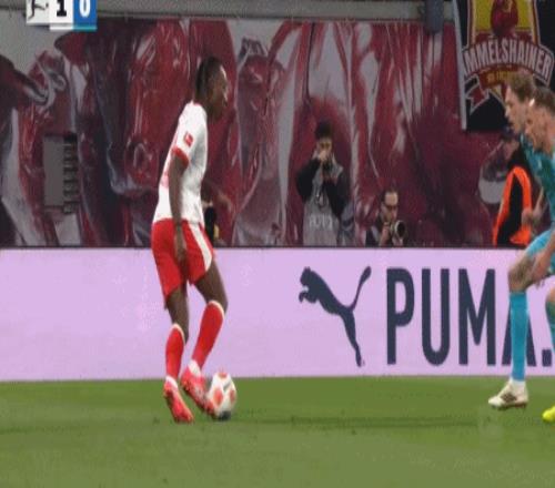 第44分鐘,迪奧曼德低傳后點(diǎn),格魯達(dá)推射破門(mén)完成雙響,萊比錫4-0