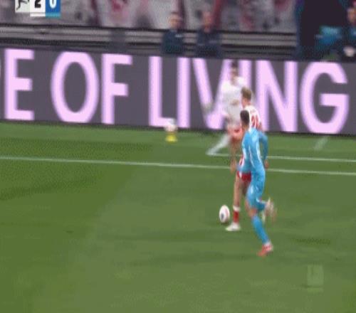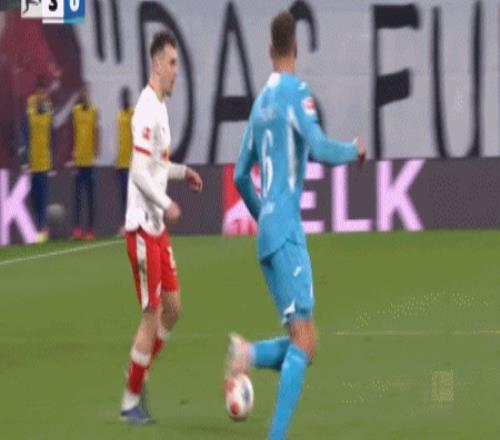 第30分鐘,格魯達(dá)斜傳至禁區(qū),鮑姆加特納停球射門(mén)一氣呵成,萊比錫3-0