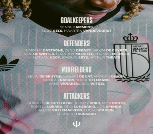 比利時隊(duì)名單:德布勞內(nèi)、盧卡庫、多庫、奧蓬達(dá)、特羅薩德在列