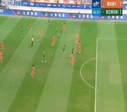 精彩時刻:第54分鐘,米特里策橫傳助攻王鈺棟破門,浙江扳平比分1比1海牛