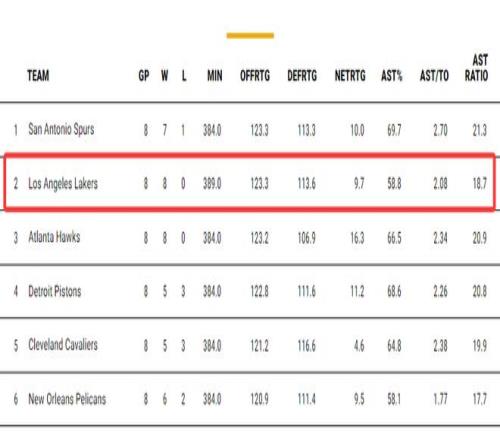 這支八連勝的湖人依靠是依靠進(jìn)攻破局,湖人這八場(chǎng)比賽進(jìn)攻效率123.3與馬刺并列聯(lián)盟第一,防守效率113.6聯(lián)盟第八,但凈效率9.7聯(lián)盟第四。
