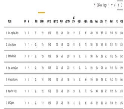 湖人最近的11場(chǎng)比賽拿到10勝,進(jìn)攻效率121.5聯(lián)盟第一,防守效率111.9聯(lián)盟第十,所以這支湖人還是依靠東契奇、里夫斯、詹姆斯三核驅(qū)動(dòng)以進(jìn)攻制勝。