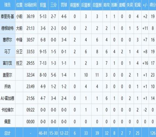此役富爾茨投籃13中7,其中三分3中1砍下17分3板7助1斷,正負值+16。