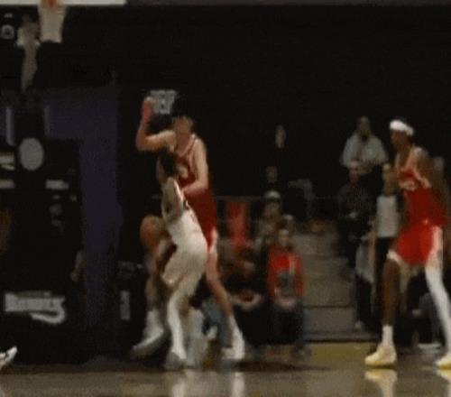 由于富爾茨投射能力有限,撕裂之城混音教練組安排楊瀚森在進攻端對位前者,所以兩人同框畫面挺多的。